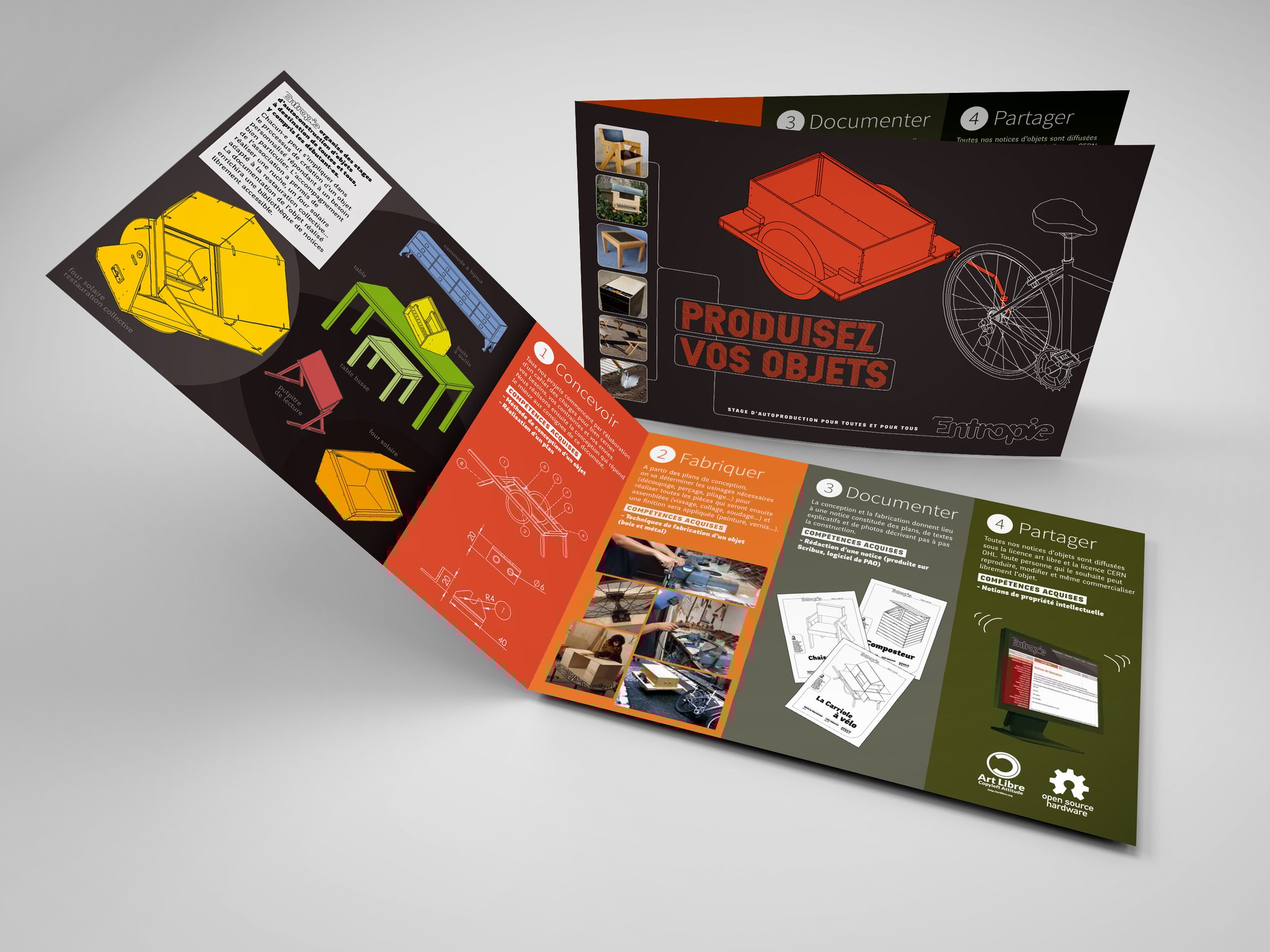L'association Entropie milite pour un nouveau modèle de société écologique basée sur l'entraide, la collaboration et la libre circulation des connaissances. Elle organise des ateliers de constructions d'objets de consommation courante ou à vocation écologique sur le mode concevoir - fabriquer - documenter - partager.